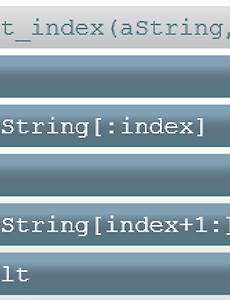 Python94 7.5. 특별한 메서드들 이제 메서드에 대해서는 다들 알고 계시겠죠? 메서드라는 것은 우리가 클래스를 만들면서 그 안에 만들어 넣은 함수를 말하지요? 만들어진 메서드를 사용하려면 객체.메서드()와 같은 형식으로 호출을 해주었구요. 오늘은 그런 일반적인 메서드들과는 조금 다른 특별한 메서드들에 대해 함께 알아보려고 합니다. __init__ 메서드 (초기화)# bookstore.py class Book: def setData(self, title, price, author): self.title = title self.price = price self.author = author def printData(self): print '제목 : ', self.title print '가격 : ', self.price print '저자 : '.. 2012. 4. 12. Python 문자열 1. 시퀀스 자료형 : 문자열, 리스트, 튜플 1) 인덱싱(indexing) : [k] >>> s = 'abcdef' # 문자열 >>> l = [100, 200, 300] # 리스트 >>> s[0] # 참조 'a' >>> s[1] 'b' >>> s[-1] 'f' >>> l[1] 200 >>> l[1] = 900 # 치환 2) 슬라이싱(Slicing) : [s:t] >>> s = 'abcdef' >>> l = [100, 200, 300] >>> s[1:3] # 1번 위치와 3번 위치 사이를 나타냄 'bc' >>> s[1:] # 1부터 끝까지 'bcdef' >>> s[:] # 처음부터 끝까지 'abcdef' >>> s[-100:100] # 범위를 넘어서면 범위 내의 값으로 자동 처리 'abcdef' >>> .. 2012. 4. 10. Python 실습_Replace at Index Replace at Index You can replace a specific character in a string by creating a new string that consists of all characters up to some index, the new character than you want to insert, and then the remainder of the original string. Create the function replace_at_index() that accepts a string, an index, and a character as inputs and returns a string with the character at the index replaced with th.. 2012. 4. 10. Python 실습_After Index After Index You can return a portion of a string from some index onwards by using the bracket operator and and the expression index:. For example: if color = 'blue' then color[1:] = 'lue' since the result is all of the characters in color from the index onwards. Create a function called after_index() that accepts a string and a number n as parameters and returns a string consisting of the charac.. 2012. 4. 10. 이전 1 ··· 11 12 13 14 15 16 17 ··· 24 다음